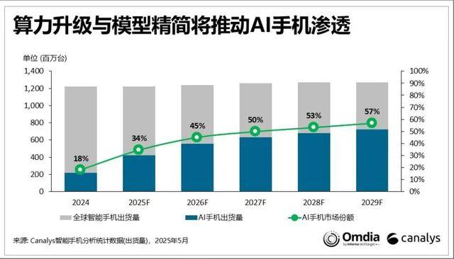 近期,科技分析机构Canalys发布了一项引人瞩目的预测报告,揭示了全球AI手机市场的未来走向。据其预计,至2025年,AI手机在全球智能手机市场中的渗透率将达到34%,这一增长趋势得益于端侧模型的优化与芯片算力的显著提升,使得AI功能逐渐普及至中端价位手机。